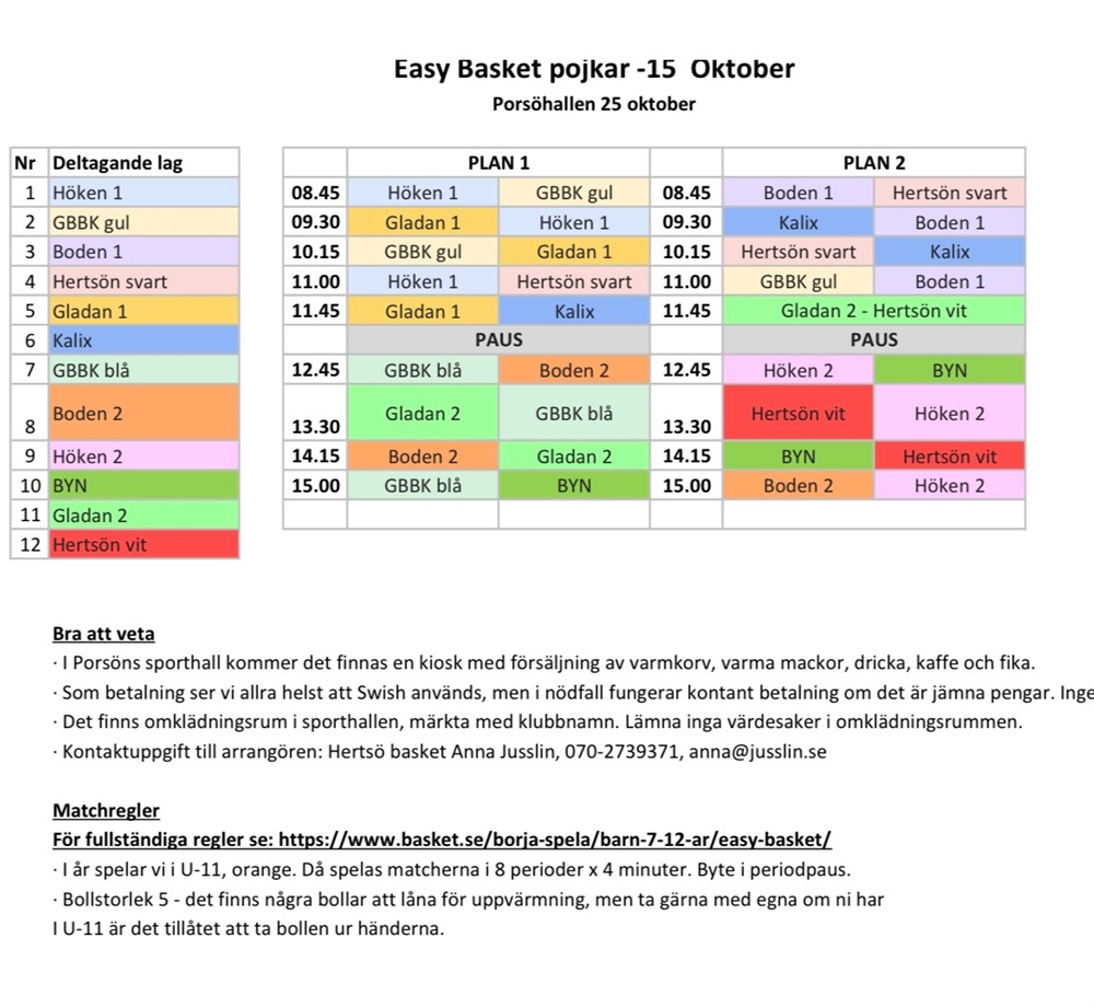 Här kommer spelschema och lagindelning inför Leos Cup som spelas i Råneå sporthall. Vi har blivit tilldelade 4 & 5 matcher /lag och lagen har lottats och ser ut enligt följande: