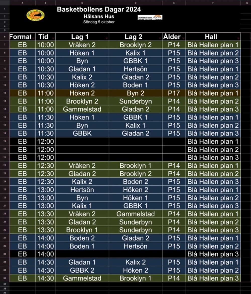 13:00 Kalix 1 - GBBK 1 Blå Hallen Plan 3