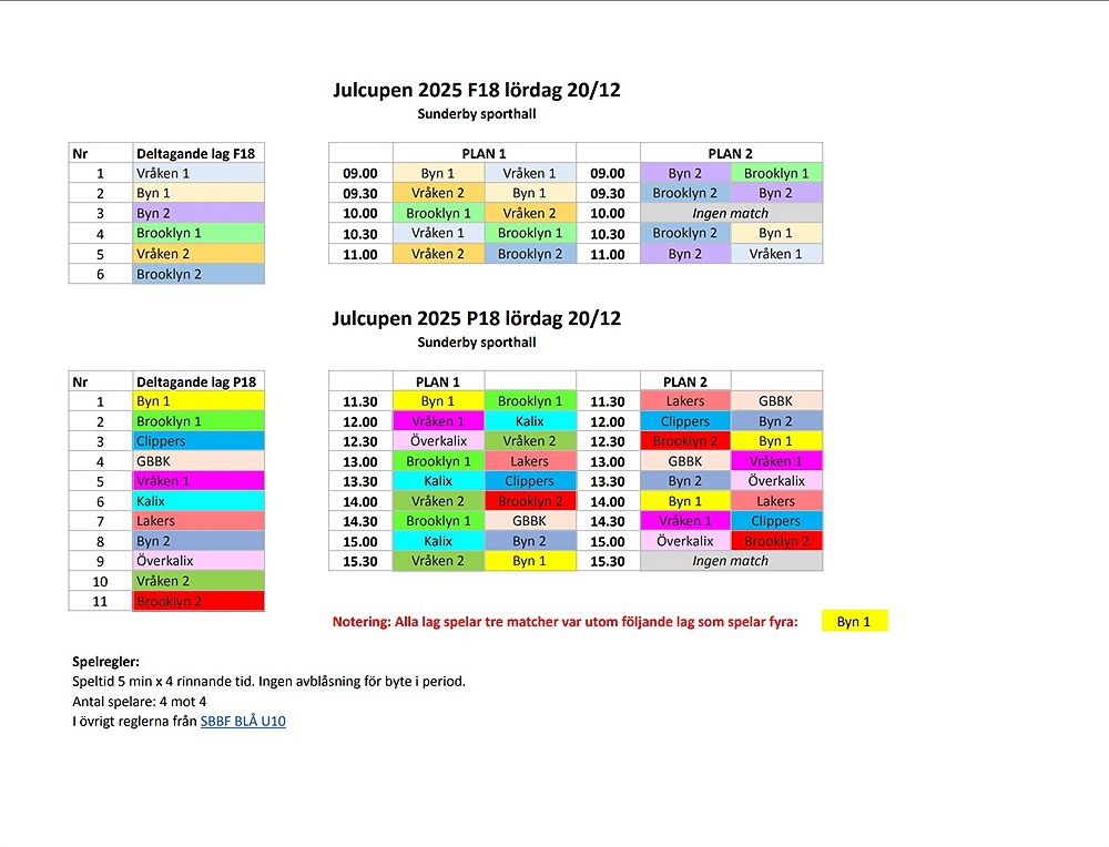 Vi spelar första matchen kl 12.00. Vi försöker vara på plats 11.20 så vi hinner byta om och samlas innan matchen.